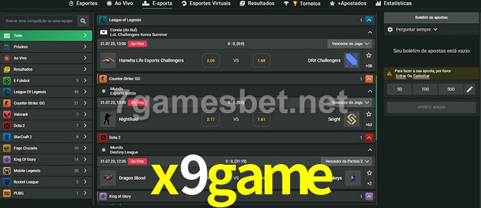 O x9game oferece uma grande seleção de opções de apostas em e-sports com probabilidades competitivas